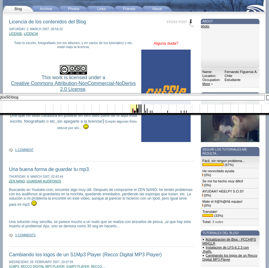 Allí quedan fotos de mi paso por el liceo, mis mascotas de esos años y otras cosas... lo genial es que será conservado muchos años... quizás algunas generaciones 😄. Ese blog me dio muchas alegrías y me permitió conocer gente de todo el mundo, incluso fue citado en una tesis de un estudiante, específicamente el tutorial de LFS, e incluso me robaron contenido por lo que debí aprender sore el copyright y cosas así.